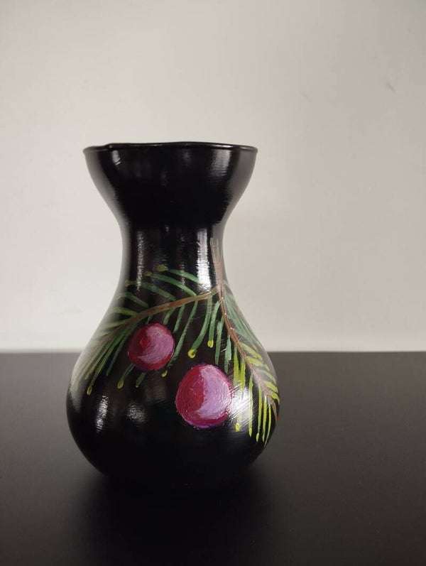 Zwart vaasje handbeschilderd met een echte winterse plant: de Helleborus. Ik hou er van🤩. Hoogte 14 cm , doorsnede 10 cm.