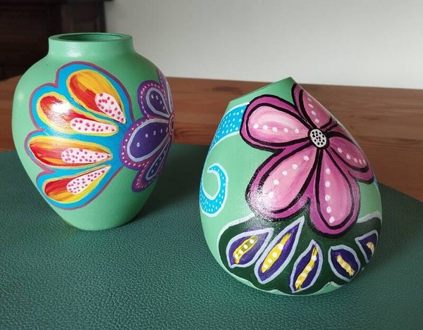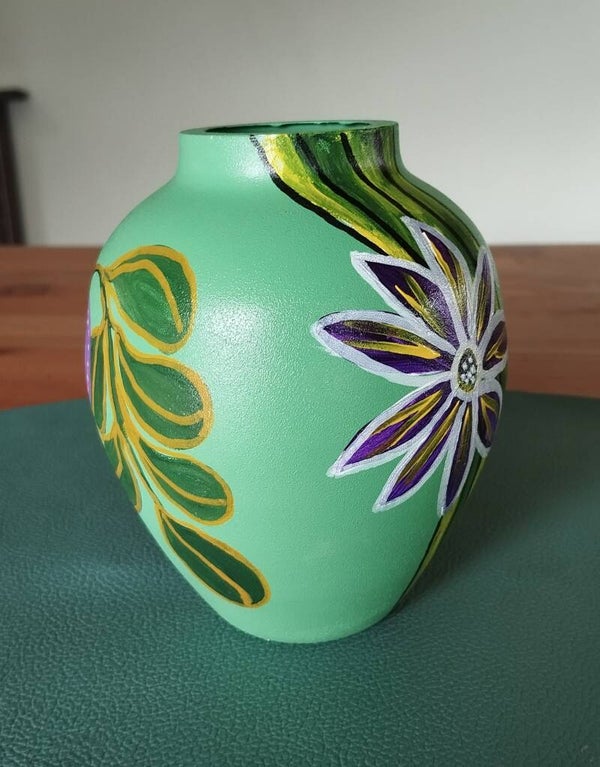 Schattig vaasje in Boho stijl. Afgewerkt met glansvernis.